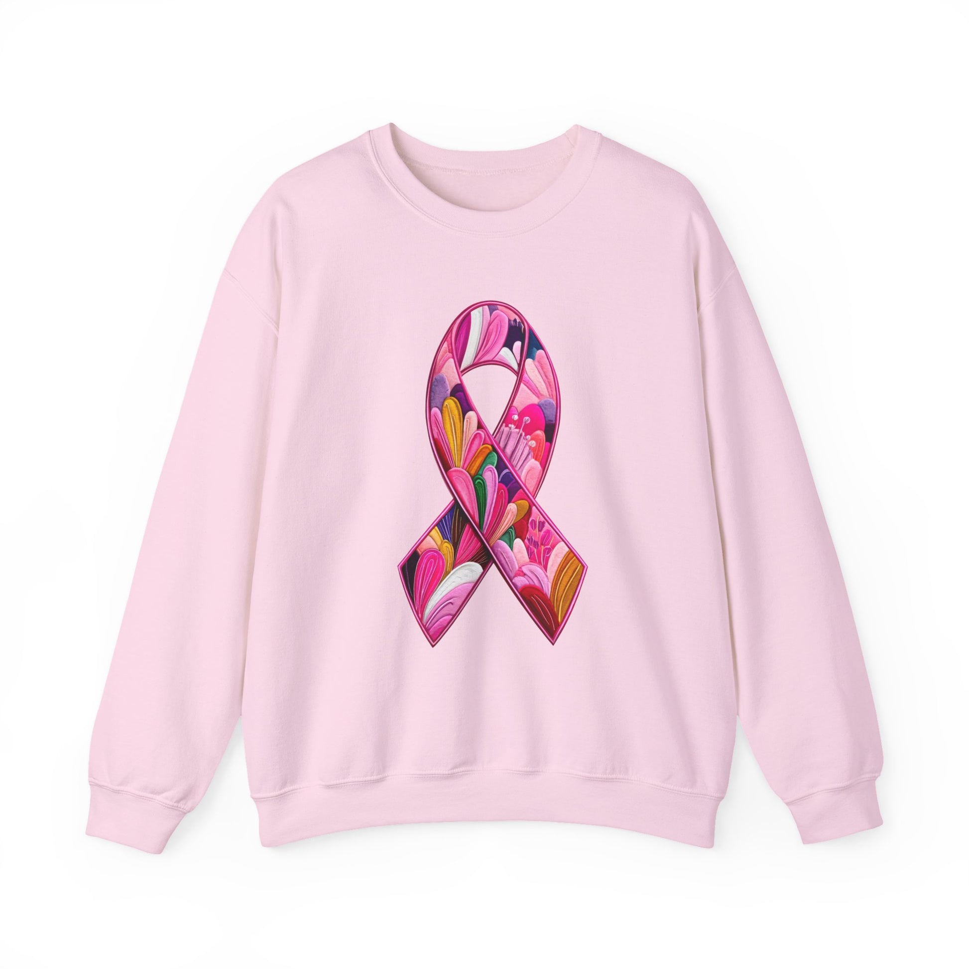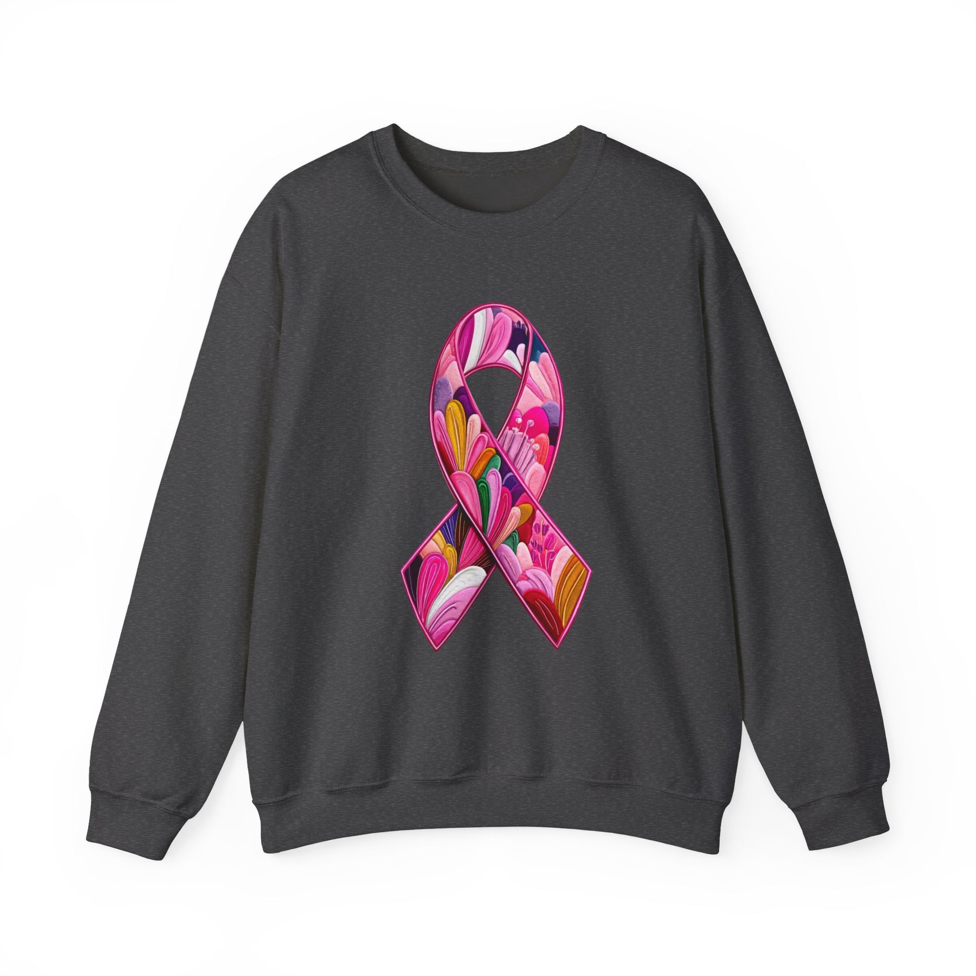 Embrace comfort and style with this unisex heavy blend crewneck sweatshirt, featuring a vibrant and uplifting floral ribbon design. Perfect for chilly days, it offers a cozy fit that's both fashion-forward and versatile. Whether you're lounging at home, heading out for a casual outing, or showing support for cancer awareness, this sweatshirt seamlessly blends into your lifestyle. It's an ideal gift for friends, family, or yourself, particularly during occasions like Breast Cancer Awareness Month or casual get-togethers. Spread positivity while looking great!